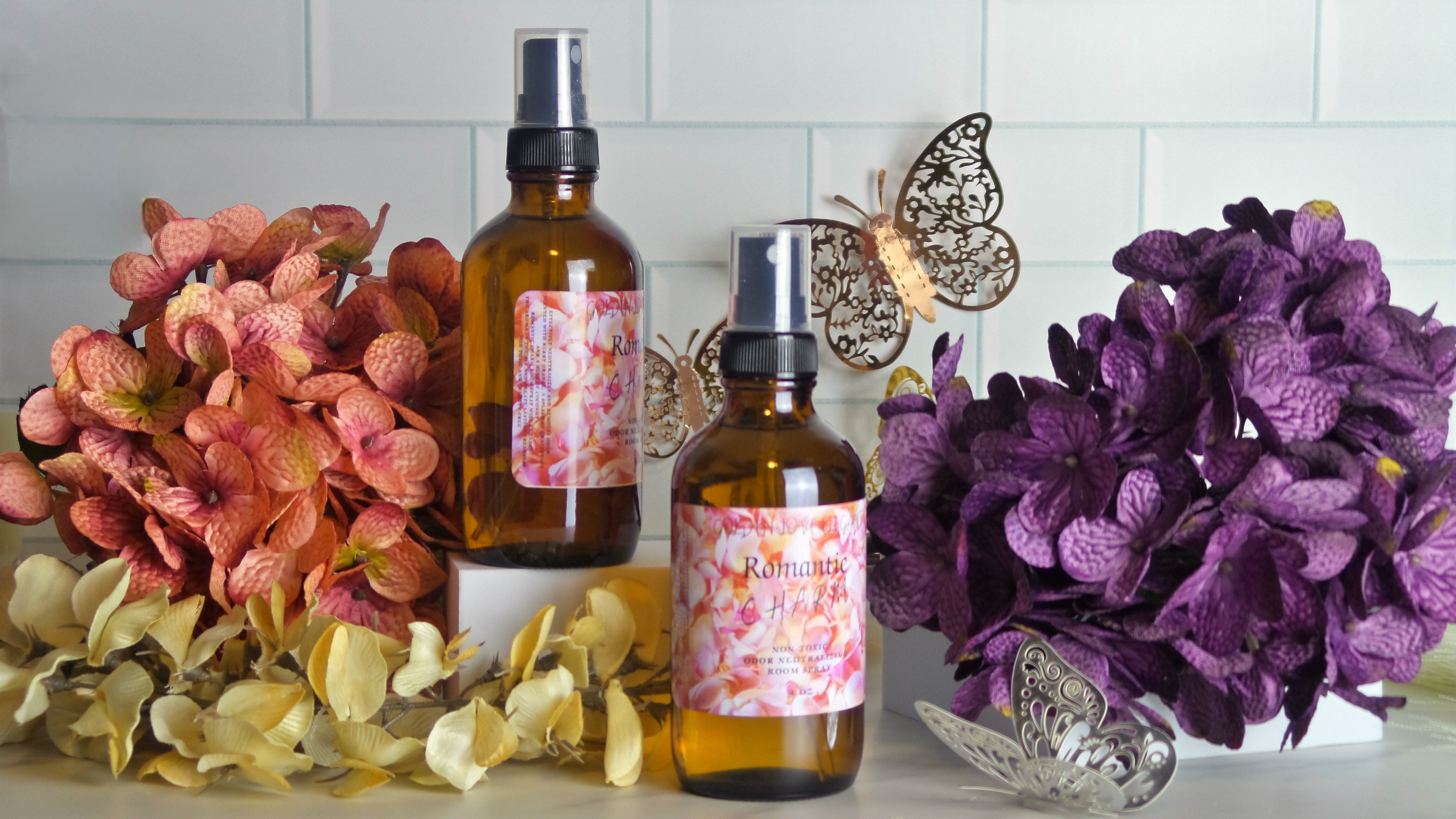 The Romantic Charm Odor Neutralizing room spray helps remove odors in the air and create lasting freshness. The room spray will enhance and refreshen the aroma in the air, creating an amazing environment like home. Scented with berry orange, a splash of grapefruit and a hint of coconut. The spray is non-toxic and cruelty-free.